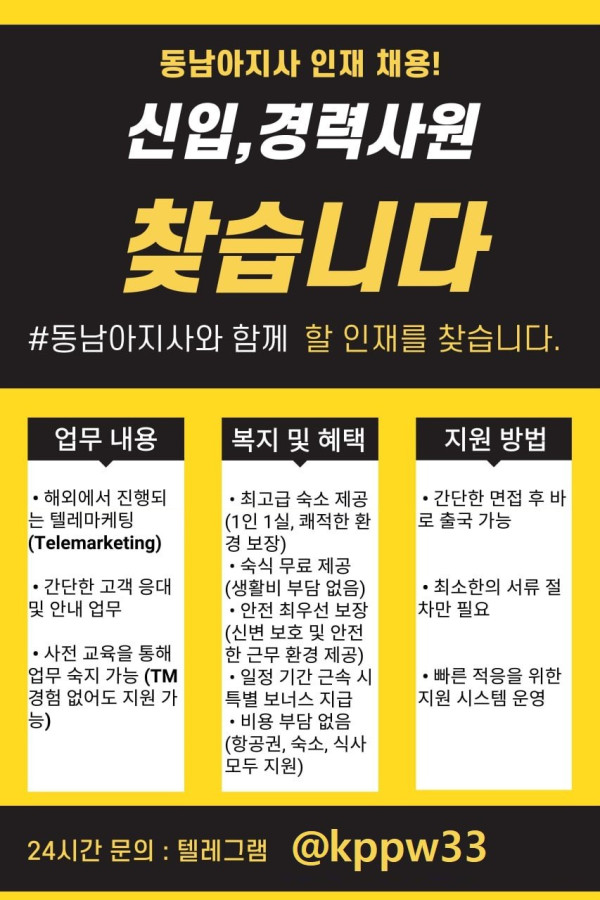 [영업·마케팅] ✅해외 TM 티엠 신입 및 경력사원 모집합니다 간절하실분 (동반환영)